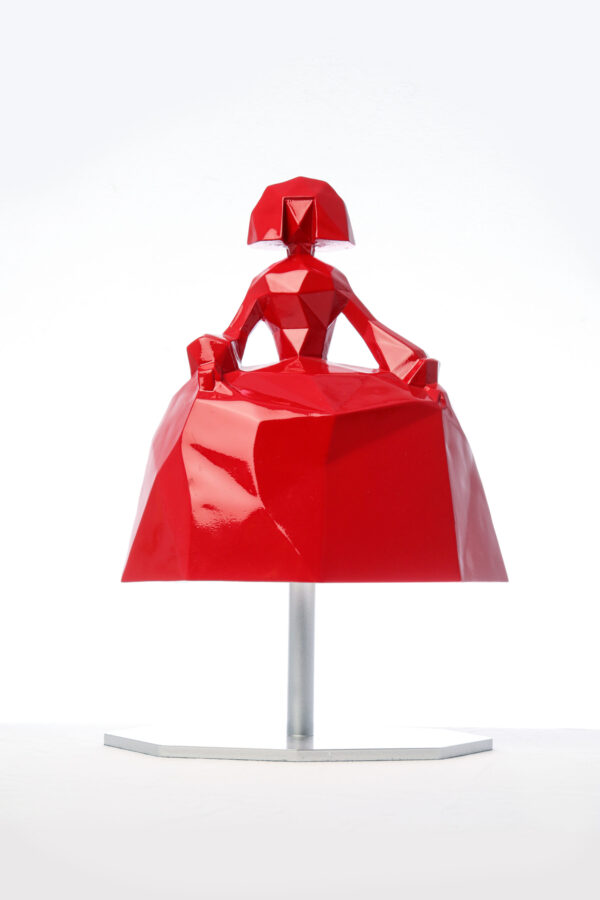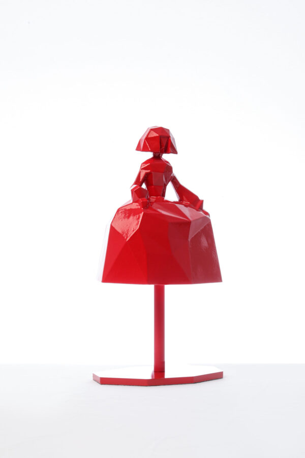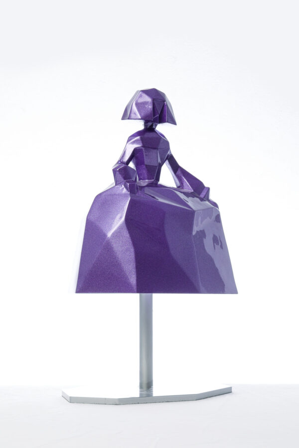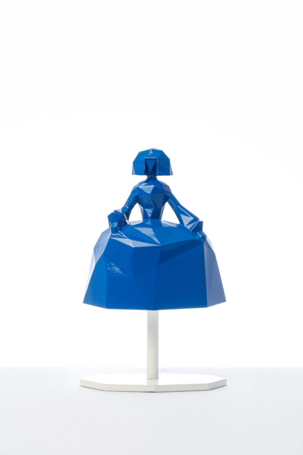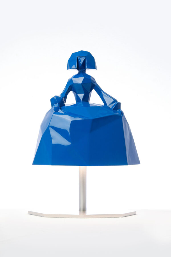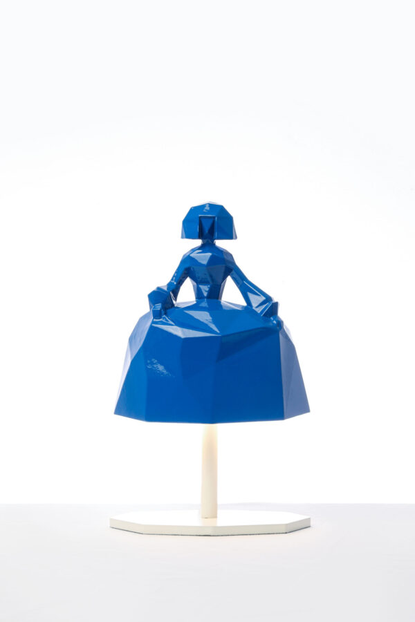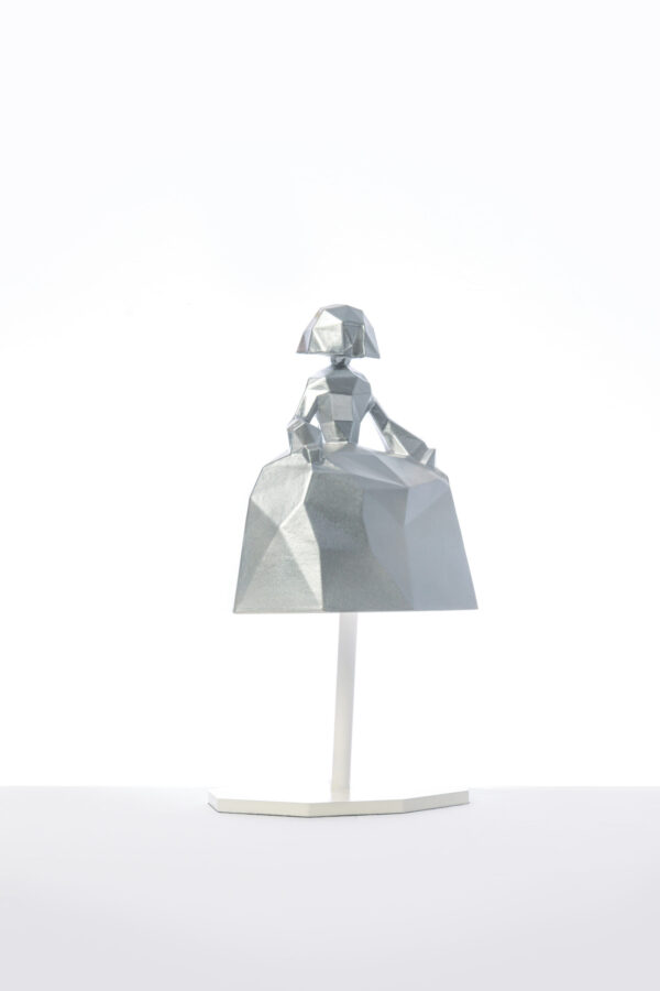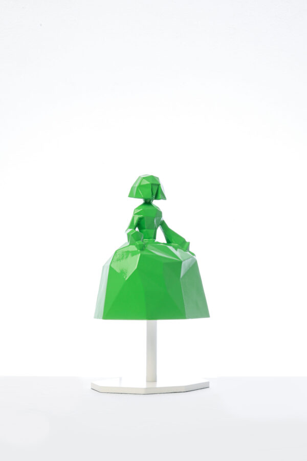 La primera Menina realizada en formato poliédrico. Ningún artista había utilizado esta técnica para interpretar el icono Velazqueño hasta ahora. Su cuerpo está construido sobre 448 caras diferentes. El artista Felipao se siente muy cómodo en el lenguaje del color, que “es lo que da vida a mis esculturas y a cualquier objeto”. La iluminación unida a un diseño innovador y único, hace de esta Menina una pieza icónica.